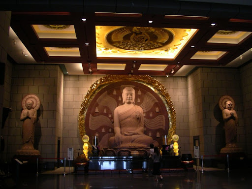 中台禪寺的大雄寶殿位於主體建築的二樓,從四天王殿直上階梯即可到達,大雄寶殿即是佛教叢林道場中供奉佛像的正殿,一尊由印度紅花崗岩雕琢而成的釋迦牟尼佛鎮坐於殿堂中央,中台禪寺大雄寶殿整體的空間設計以紅、灰為主色,侍立兩旁的多聞阿難尊者與苦行迦葉尊者代表著修行的精神。中台禪寺的地藏殿